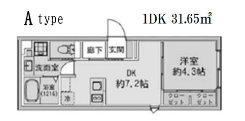 1DK( DK7.2畳/洋室4.3畳 ) |