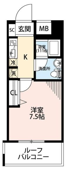 | 築年月 | 2018年5月 | 間取り | 1K( 洋室7.5畳/K1.5畳 ) | 専有面積 | 25.62m2 |