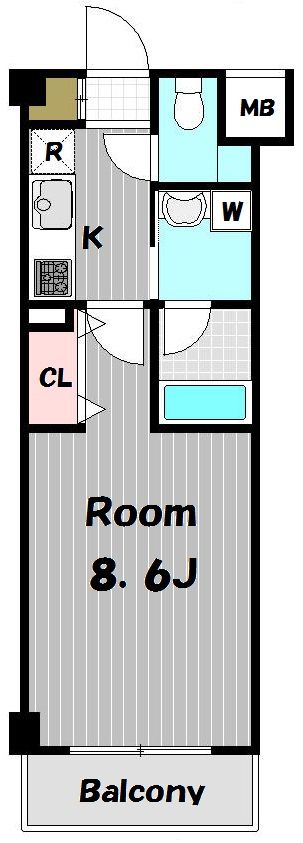 | 築年月 | 2007年5月 | 間取り | 1K( K3畳/洋室8.6畳 ) | 専有面積 | 26.97m2 |