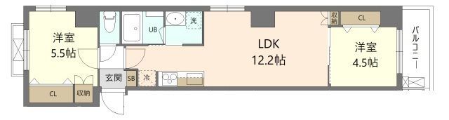 2LDK( LDK12.2畳/洋室4.5畳/洋室5.5畳 ) |