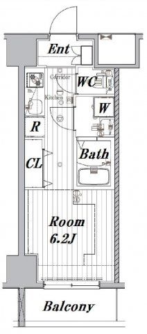 | 築年月 | 2016年8月 | 間取り | 1K( 洋室6.2畳 ) | 専有面積 | 22.47m2 |