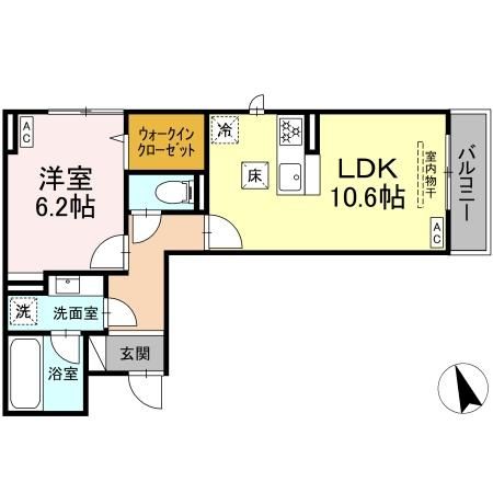 | 築年月 | 新築 | 間取り | 1LDK( LDK10.6畳/洋室6.2畳 ) | 専有面積 | 44.22m2 |