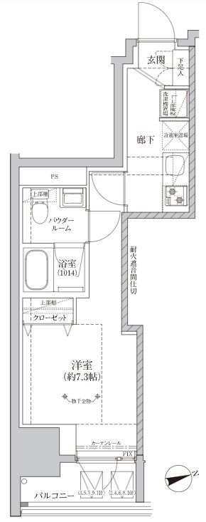 | 築年月 | 2024年10月 | 間取り | 1K( 洋室7.3畳/K2畳 ) | 専有面積 | 24.33m2 |