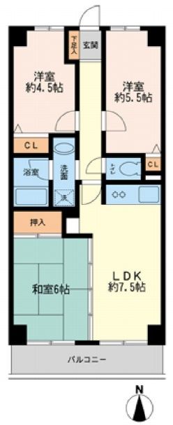 | 築年月 | 1994年2月 | 間取り | 3LDK( LDK7.5畳/洋室5.5畳/洋室4.5畳/和室6畳 ) | 専有面積 | 56.16m2 |