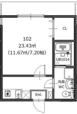 | 築年月 | 2019年3月 | 間取り | 1K( 洋室7.2畳/K1.5畳 ) | 専有面積 | 23.43m2 |