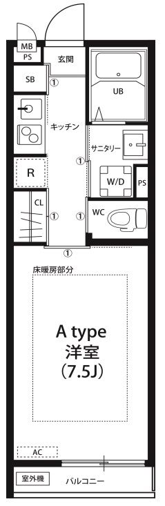 | 築年月 | 2014年4月 | 間取り | 1K( 洋室7.5畳/K2畳 ) | 専有面積 | 23.6m2 |