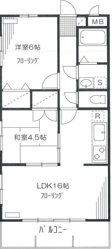 | 築年月 | 2002年10月 | 間取り | 2LDK( LDK16畳/和室4.5畳/洋室6畳 ) | 専有面積 | 54.65m2 |