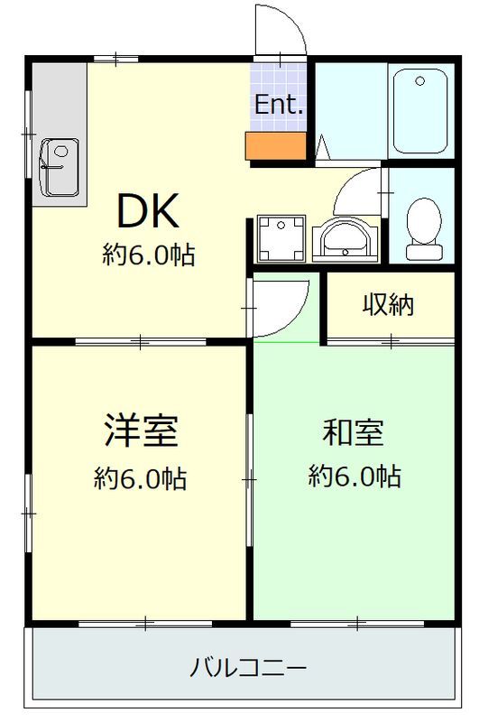 | 築年月 | 1995年12月 | 間取り | 2DK( DK6畳/洋室6畳/和室6畳 ) | 専有面積 | 40.21m2 |