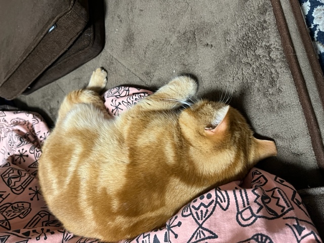 山を下りて家に帰ってくると実家のネコが行き倒れみたいな格好で出迎えてくれました