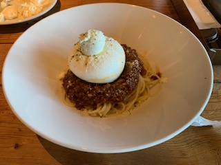 パスタコースの【王様のブッラータチーズボロネーゼ】