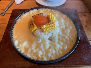 ライスボールコースの【鉄板ライスカルボナーラ】