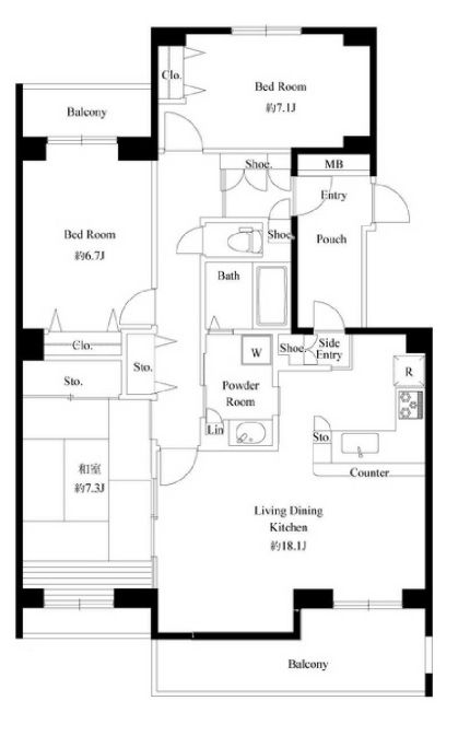 生麦の3LDK賃貸マンション