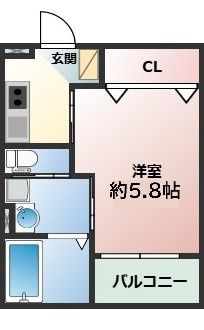 1K( 洋室5.8畳 ) |