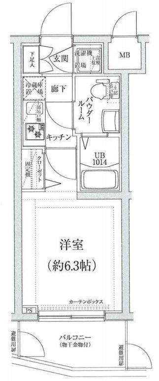 1K( 洋室6.3畳/K1.5畳 ) |