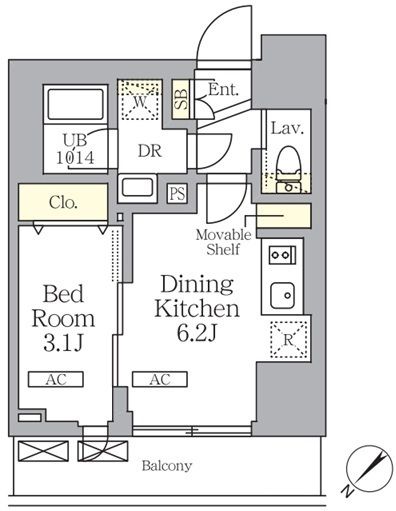 1DK( DK6.2畳/洋室3.1畳 ) |