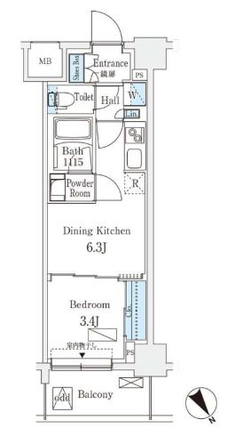 1DK( DK6.3畳/洋室3.4畳 ) |
