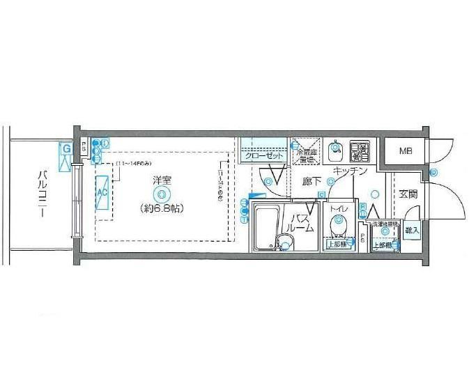 | 築年月 | 2010年8月 | 間取り | 1K( 洋室6.8畳/K2畳 ) | 専有面積 | 21.21m2 |