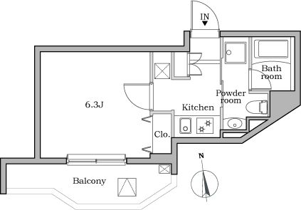 1K( 洋室6.3畳/K2畳 ) |