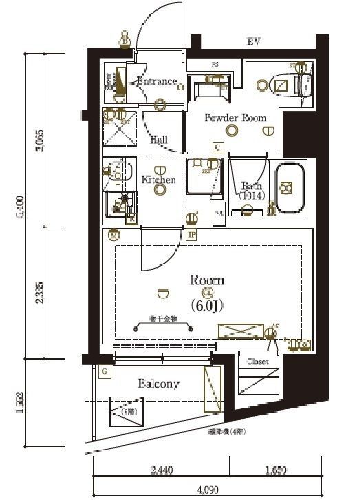 - 間取り:1K / 専有面積:23.7m2