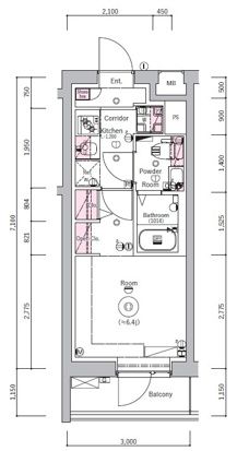 - 間取り:1K / 専有面積:21.17m2