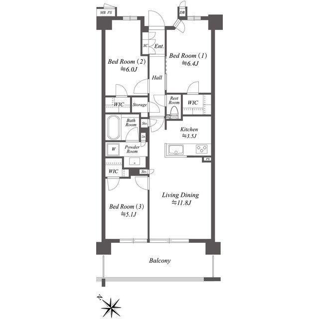 | 築年月 | 2024年9月 | 間取り | 3LDK( 洋室6.4畳/洋室5.1畳/洋室6畳/LD11.8畳/K3.5畳 ) | 専有面積 | 72.51m2 |